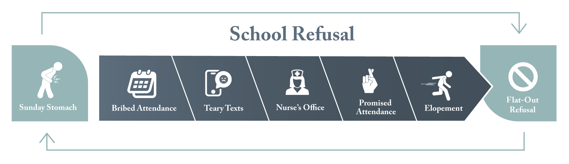 Initiate family therapy with parents and child to explore the root causes of school avoidance and develop a strategy for resolution. The work in sessions includes developing the student’s coping skills, coaching parents on effective responses to school refusal, role-playing different scenarios, and taking part in family communication exercises.